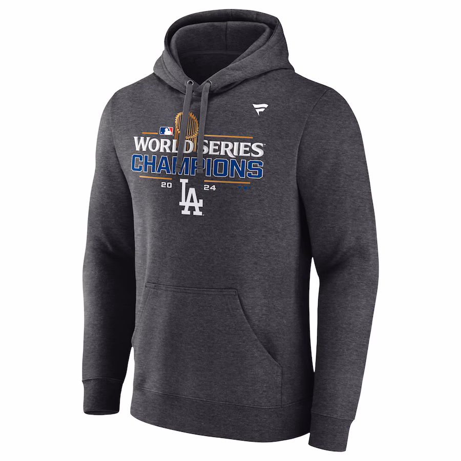 Men's Los Angeles Dodgers Fanatics Heather Charcoal 2024 World Series Champions Locker Room Pullover Hoodie メンズ ロサンゼルス・ドジャース 2024年 ワールド・シリーズ・チャンピオン パーカー
