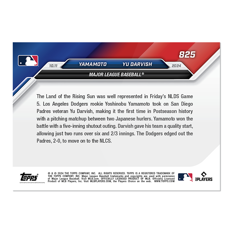 Yoshinobu Yamamoto/Yu Darvish - 2024 MLB Topps NOW® Card 825 山本由伸/ダルビッシュ有 NLDS ポストシーズン初の日本人先発対決