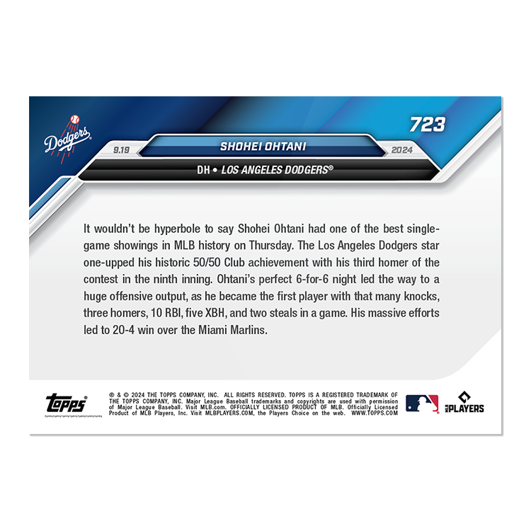Shohei Ohtani - 2024 MLB TOPPS NOW® Card 723 大谷翔平 6打数6安打3ホームラン10打点5長打2盗塁