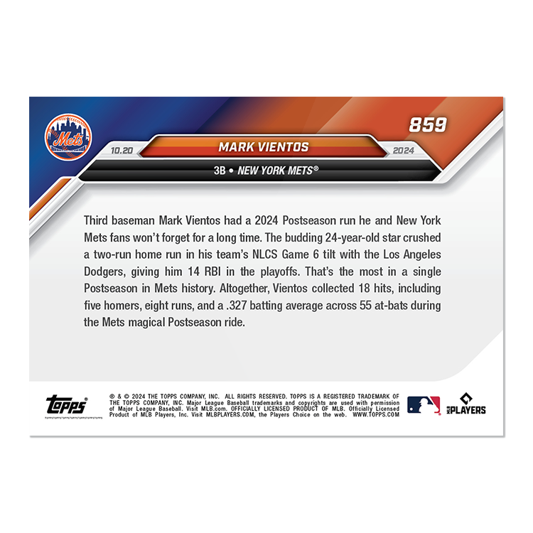 Mark Vientos - 2024 MLB Topps NOW® Card 859 マーク・ビエントス NLCS